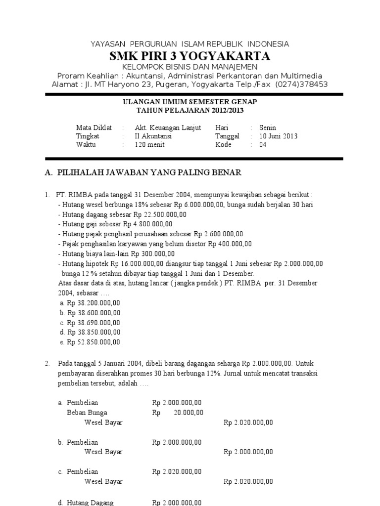 Contoh Soal Pilihan Ganda Utang Dan Jawabannya