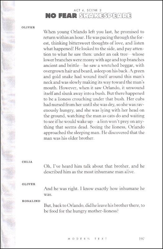 Shakespeare No Fear As You Like It - No Fear Shakespeare Ser As You Like It By John Crowther William Shakespeare And Sparknotes Staff 2004 Trade Paperback For Sale Online Ebay / The court of duke frederick:. Sparknotes no fear shakespeare & no fear literature. How to give a speech like hamlet, persuade like henry v, and other secrets from the world's greatest communicator. Heavily laden with shakespearean dialogue and narrative, but interesting if you really like shakespeare. A complete summary of william shakespeare's play, as you like it. [8 vols., including a vol.